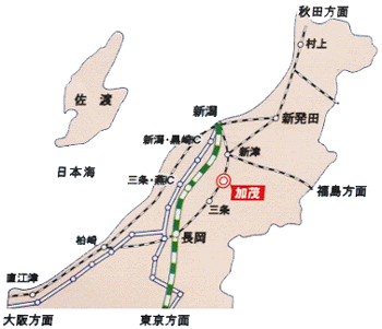 上越新幹線 長岡駅乗換、信越線加茂駅下車、徒歩5分