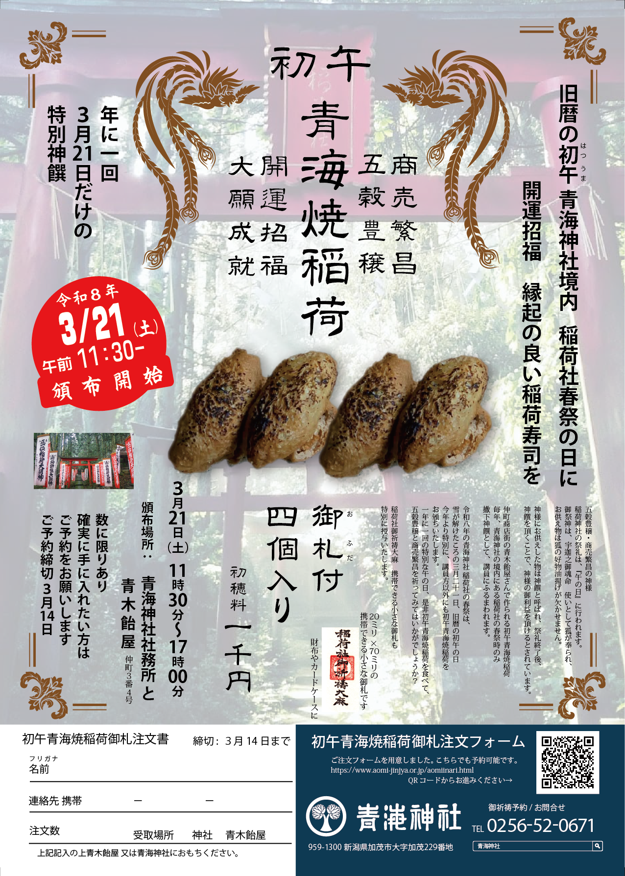 令和8年青海焼稲荷 ご予約ページ