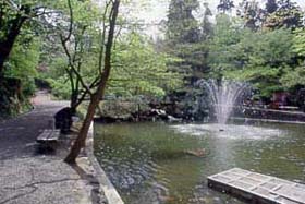 噴水、水車があり、鯉が泳いでおります。軽食もありゆったりした時間を過ごせます。