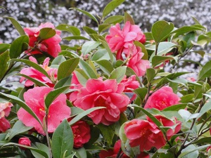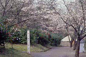約100種の園芸品種1300本の雪椿が植栽され、春には一帯の桜との共演が訪れる人々を楽しませる。