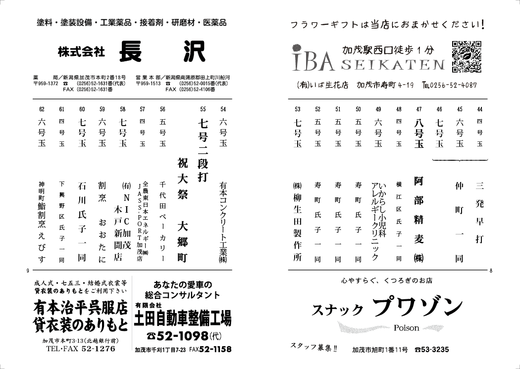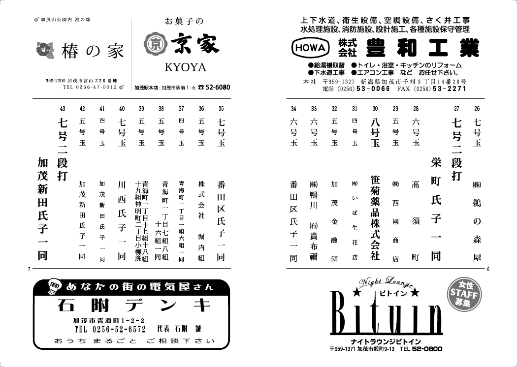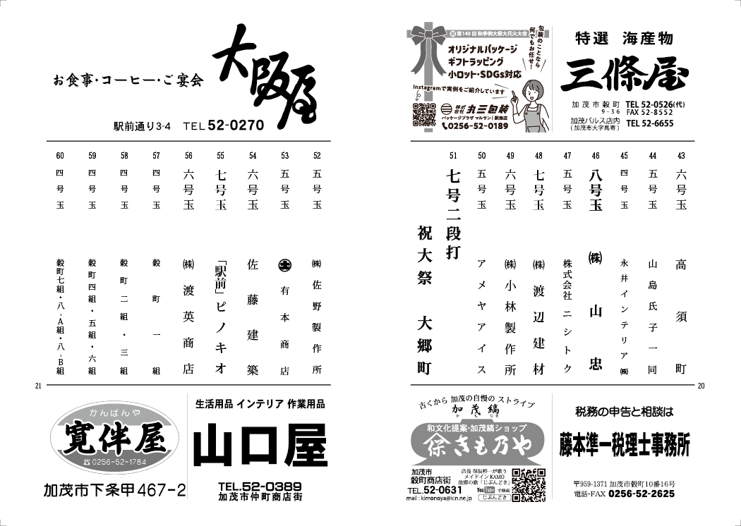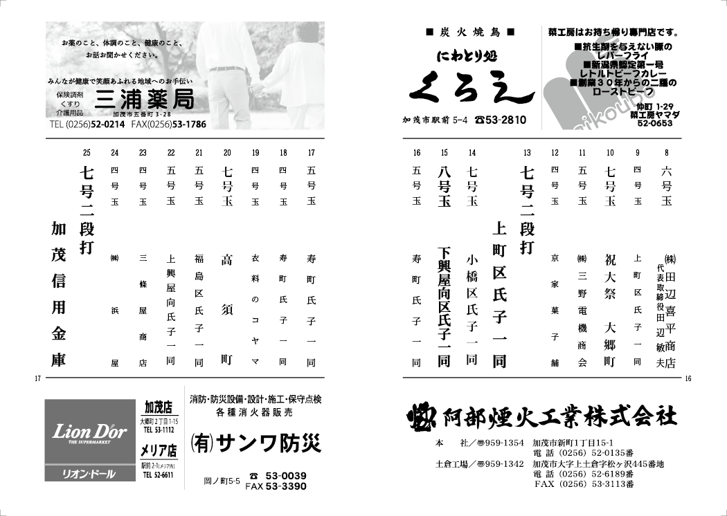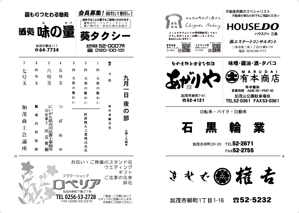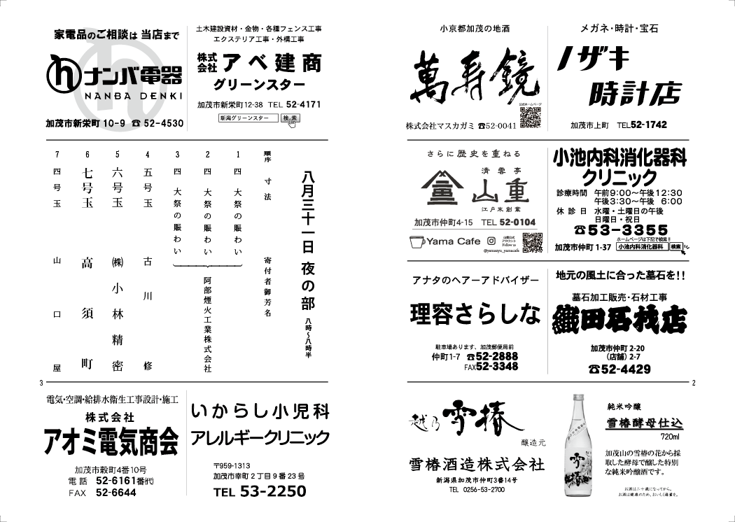 結びに、長きにわたる皆様のあたたかいご支援がございまして通算140回目を迎えることができました。また昨年同様、花火をあげる阿部煙火工業株式会社様につきましては、多大なるご支援いただきましたことを申し添え、末長く加茂の風物詩としてこの大花火大会が開催できます様、今後ともご協力何卒よろしくお願いいたします。